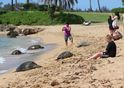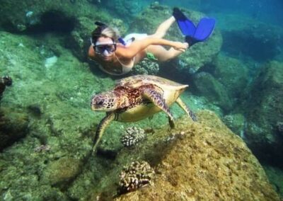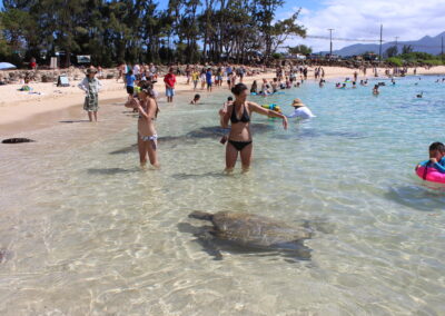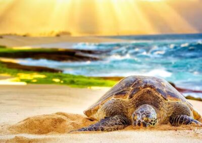 Immerse yourself in the paradise of Oahu’s North Shore beaches as we visit this haven for Hawaiian sea turtles. Witness these magnificent creatures in their natural habitat as they gracefully glide through the crystal-clear waters. This is your chance to swim alongside these gentle giants, creating cherished memories that will last a lifetime.